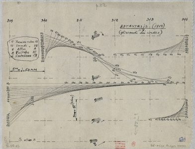 His first piece, named Metastasis, after the Greek Meta (after or beyond) and stasis (immobility) is an exploration of the dialectical contrast between movement and immobility. This problem fascinated the ancient Greek philosophers, beginning with Parmenides and continuing with Zeno and is illustrated in the fable of Achilles and the tortoise. In Metastasis, Xenakis transferred the radiating lines on his drawing board into criss-cross glissandi for the strings. Superimposed string slides, each with a different gradient, create huge sweeps of sound that expand and contract asymmetrically, producing continuous and discontinuous change. This is his famous ‘stochastic’ method of composition, a system based on the ‘calculus of probabilities’ whereby notes are assigned randomly in the manner of Brownian motion of gas molecules or massed blood cells, which create a form resulting not from the movement of the individual but the aggregate. Music is no longer visualised as a one-directional process moving through various stages to a logical conclusion but rather a distribution of vast numbers of sound events. The piece was premiered at the Festival of Donaueschingen in 1955 but the performance was met largely with miscomprehension and indifference. Xenakis, however, knew he had found his way as a composer.